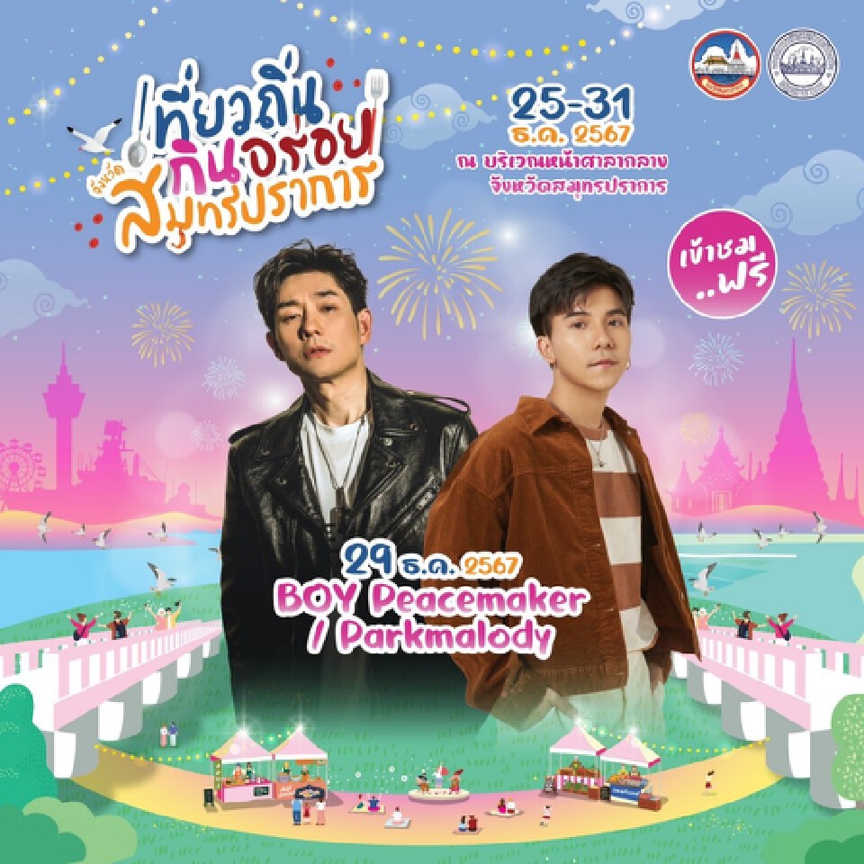 งานคริสต์มาส-เคาท์ดาวน์ปีใหม่ 2568 ห้ามพลาดเทศกาล "เที่ยวถิ่น กินอร่อย" สมุทรปราการ รวมร้านเด็ดกว่า 100 ร้าน ศิลปินดัง 7 วัน 7 คืน พร้อมไฮไลต์พิเศษ ส่งท้ายปีแบบสุดคูล