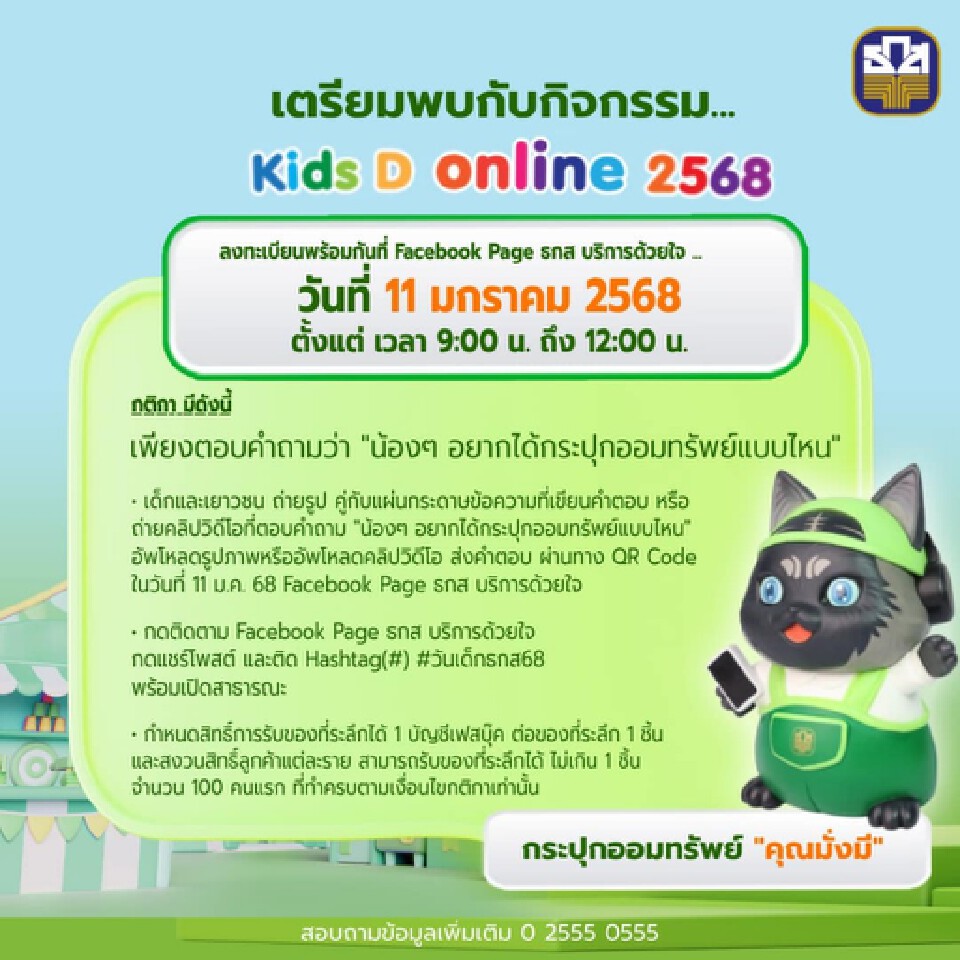 วันเด็กแห่งชาติปี 2568 ธ.ก.ส.เปิดให้ลงทะเบียนเข้าร่วมกิจกรรม “Kids D online 2568”