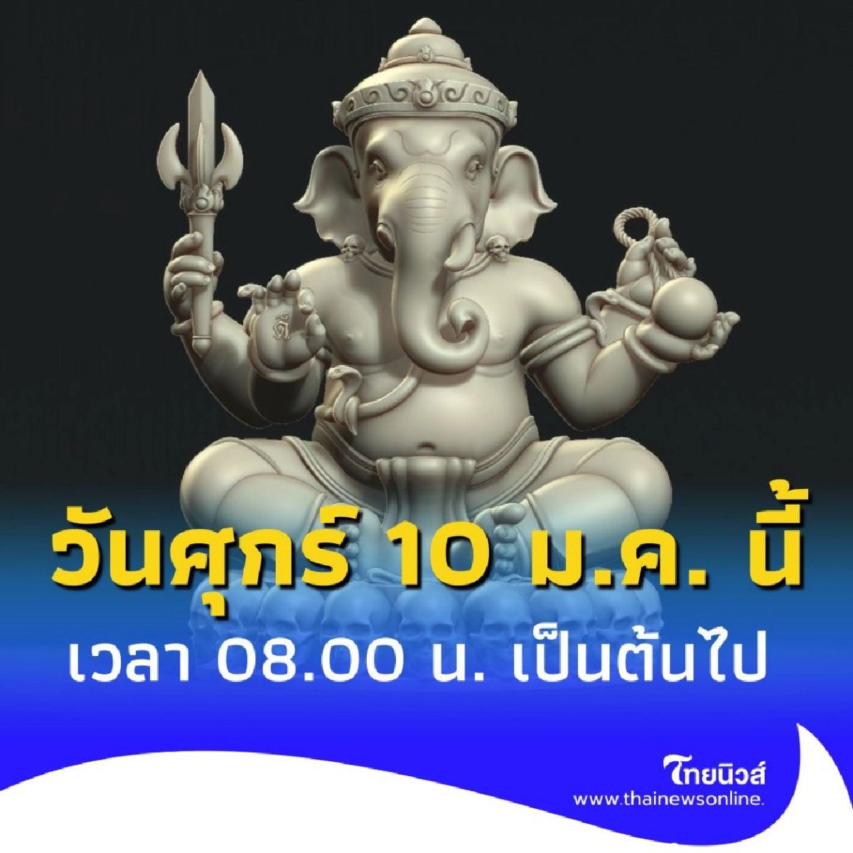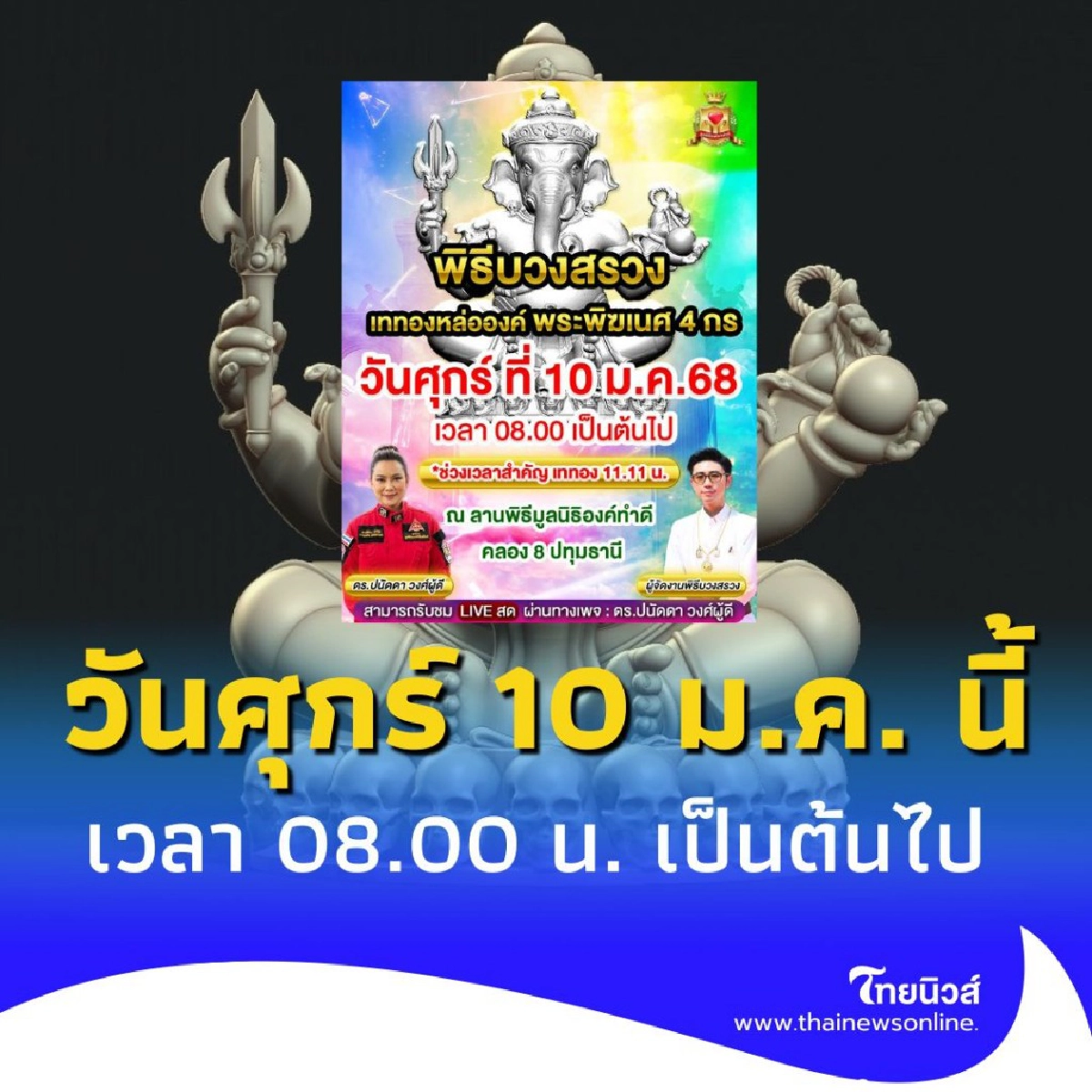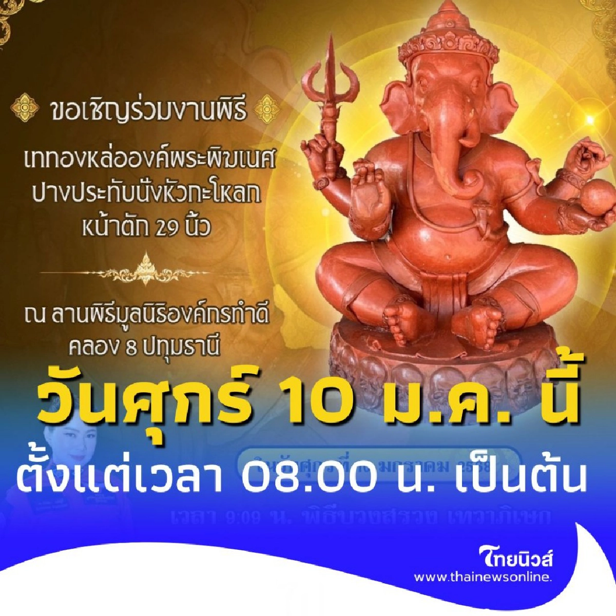 พิธีบวงสรวง องค์พระพิฆเนศ 4 กร องค์กรทำดี ศุกร์ 10 ม.ค. นี้