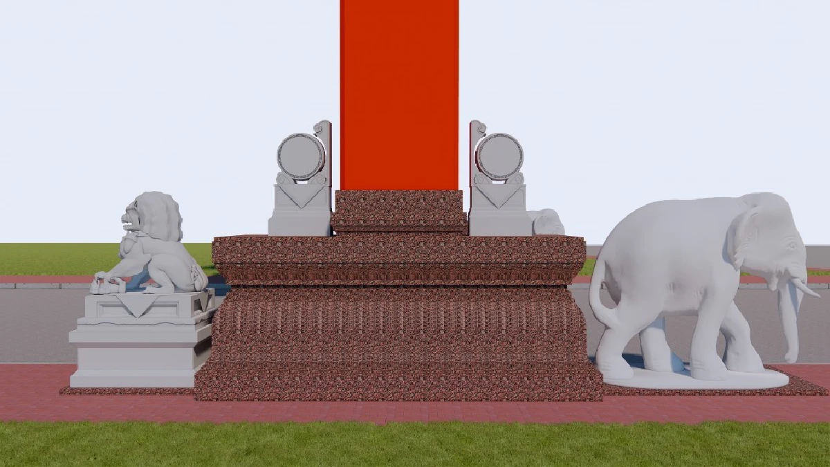 ด้วยการมอบชุดประติมากรรมหินอ่อนแกะสลักชิ้นเอกอุ ประกอบด้วย ประติมากรรมช้าง สิงโต อย่างละ 2 คู่ และ กลอง จำนวน 4 คู่ ทั้งหมดแกะสลักจาก หินอ่อนหยกขาว หรือ ฮั่นไป๋หวี่ เพื่อประดับบริเวณฐานเสาทั้งสองข้างของซุ้มประตูฯ