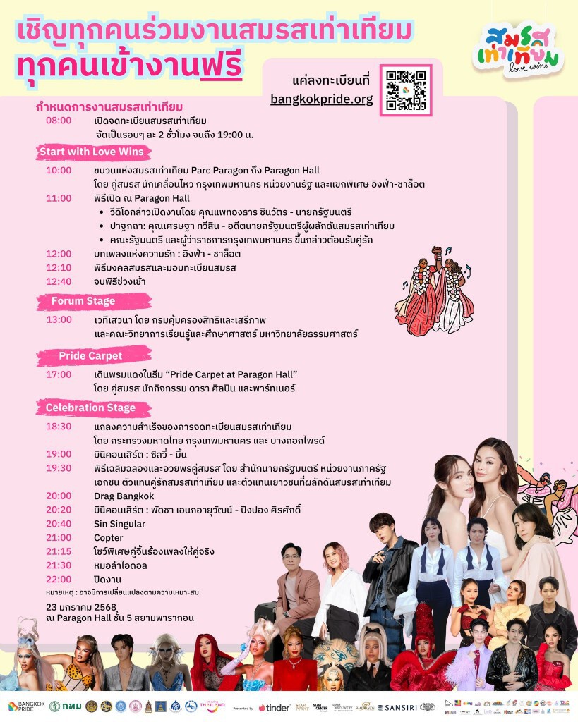 งาน "Marriage Equality สมรสเท่าเทียม" วันที่ 23 ม.ค.68 เช็คกำหนดการ สถานที่จัดงาน พร้อมไฮไลต์และจุดลงทะเบียนที่นี่