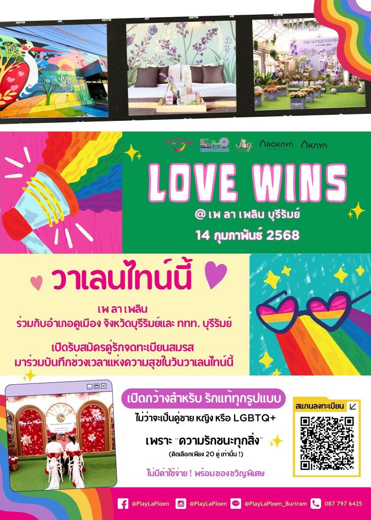 "Love Wins @ บุรีรัมย์" : จดทะเบียนสมรสภายใต้แนวคิด "รักมั่นคง ยืนยง ดั่งนกกระเรียน"