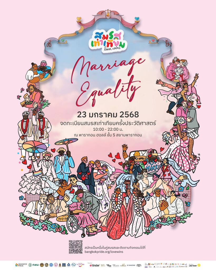 เริ่มแล้ววันนี้ จดทะเบียนสมรสเท่าเทียม วันที่ 23 ม.ค.68 เช็คเงื่อนไขการจดทะเบียน หลักฐาน เอกสาร พร้อมทั้งจุดจัดงานอีเวนต์ โปรโมชันสำหรับคู่รักที่จดทะเบียนสมรสทั่วไทยที่นี่