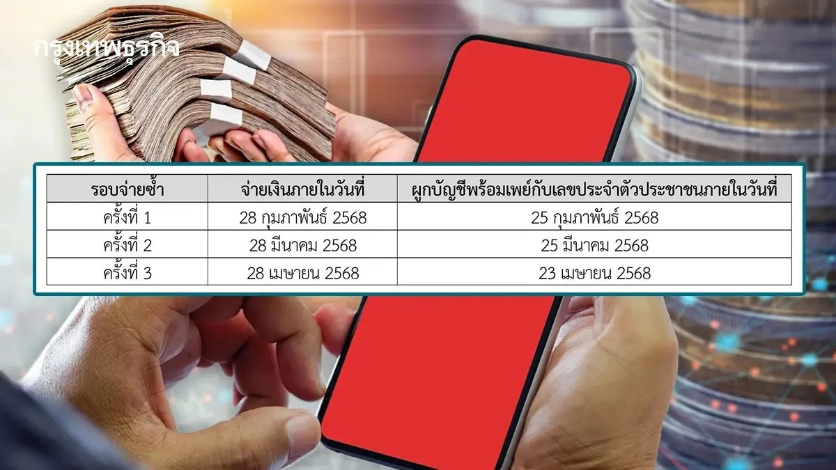 รอบจ่ายซ้ำ ครั้งที่ 2 จ่ายเงิน 28 มีนาคม 2568 ผูกบัญชีพร้อมเพย์กับเลขประจำตัวประชาชนภายในวันที่ 25 มีนาคม 2568