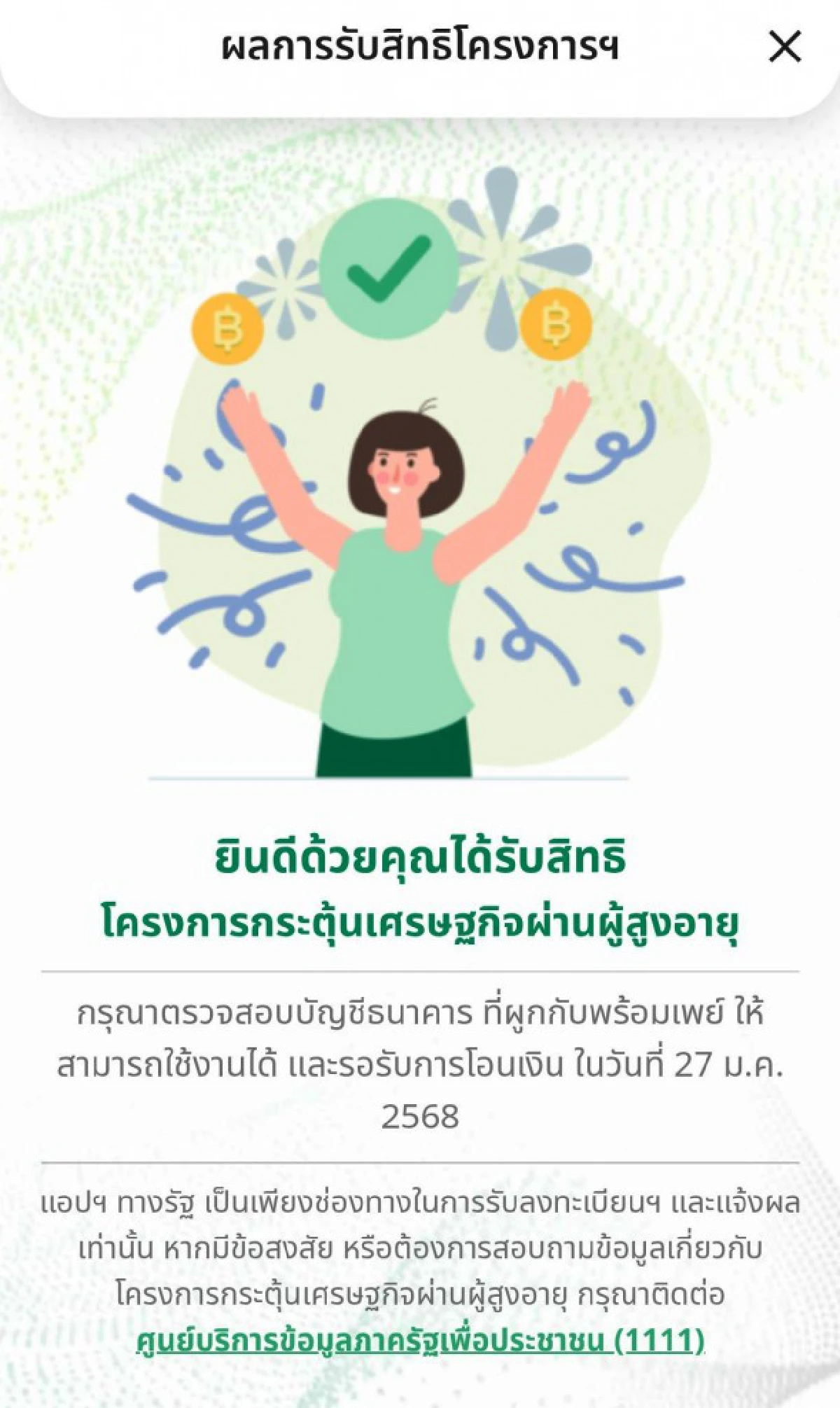 "ยินดีด้วยคุณได้รับสิทธิโครงการกระตุ้นเศรษฐกิจผ่านผู้สูงอายุ"