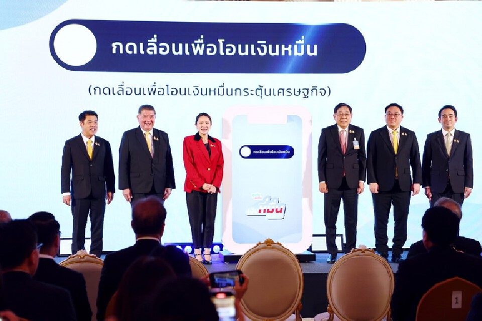 ทั้งนี้ ภายหลังจากการกล่าวเปิดงาน นายกรัฐมนตรีได้กดยืนยันการโอนเงิน 10,000 บาท ให้แก่กลุ่มเป้าหมายของโครงการฯ ซึ่งถือเป็นสัญลักษณ์ของการเปิดตัวโครงการฯ อย่างเป็นทางการ เพื่อเป็นการประชาสัมพันธ์โครงการฯ ให้ประชาชนทราบอย่างทั่วถึง และสร้างความเชื่อมั่นต่อการดำเนินนโยบายกระตุ้นเศรษฐกิจของคณะรัฐมนตรีที่ได้แถลงต่อรัฐสภา
