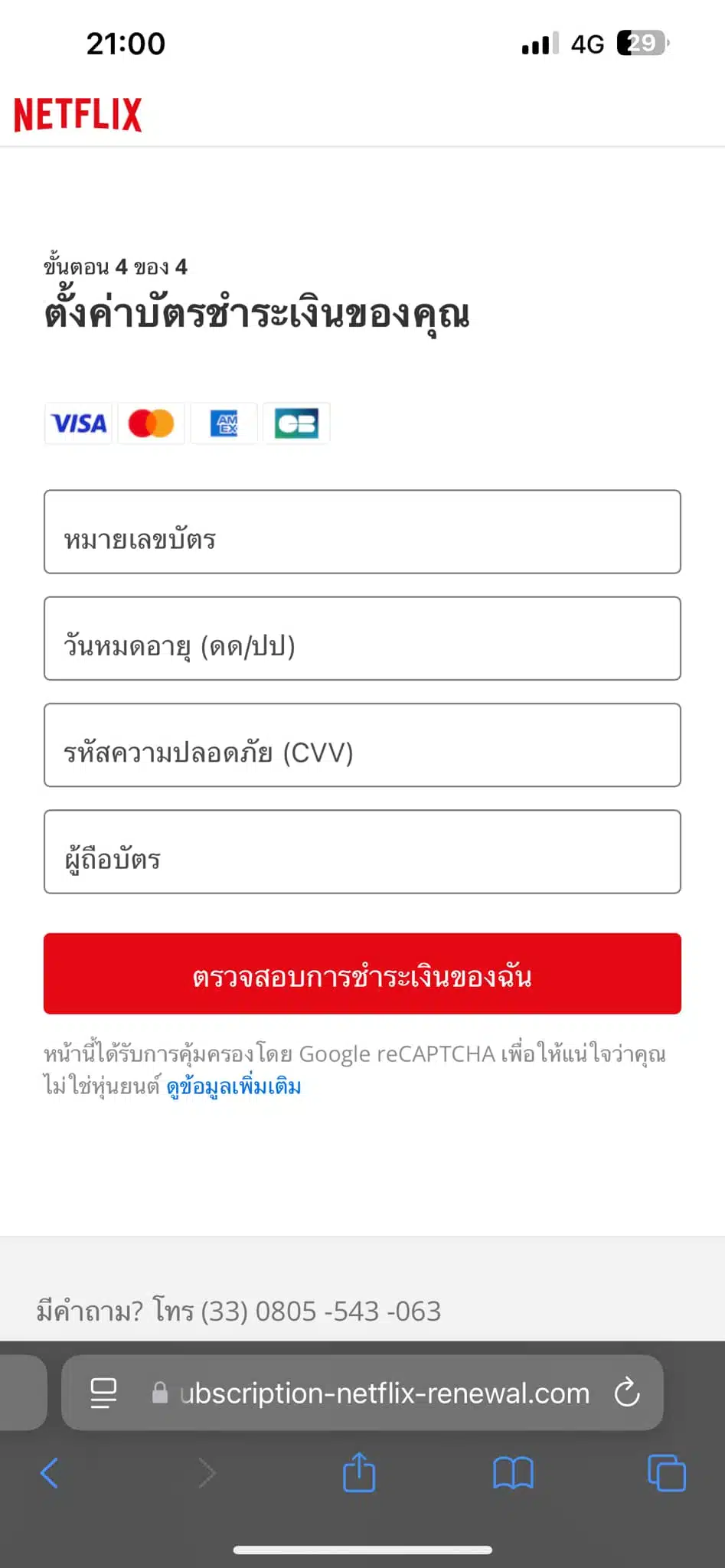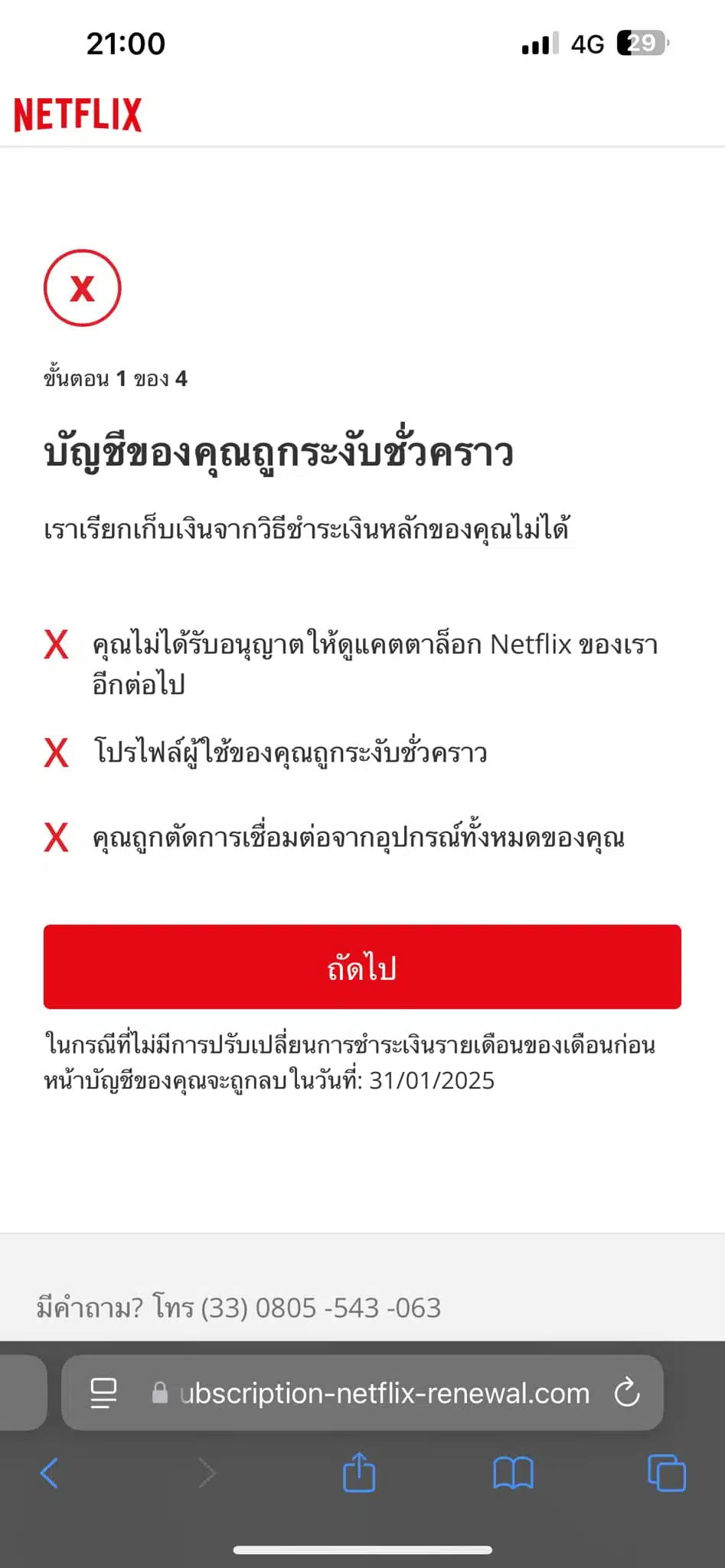 สาวเตือนภัย มิจฉาชีพสวมรอยเน็ตฟลิกซ์ (Netflix) ส่ง SMS ปลอม หลอกผู้ใช้งาน อ้างชำระเงินไม่สำเร็จ หวังกรอกข้อมูลบัตรเครดิต โชคดีไหวตัวทัน รีบอายัดบัตรได้ทันเวลา