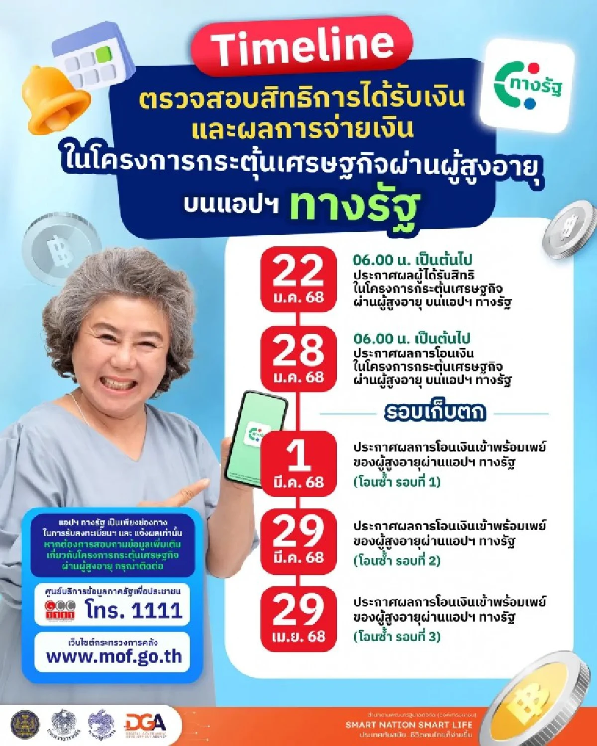ไทม์ไลน์ตรวจสอบสิทธิการได้รับเงินดิจิทัล 10,000 บาท ผลการจ่ายเงินโครงการกระตุ้นเศรษฐกิจผ่านผู้สูงอายุ บนแอปทางรัฐ