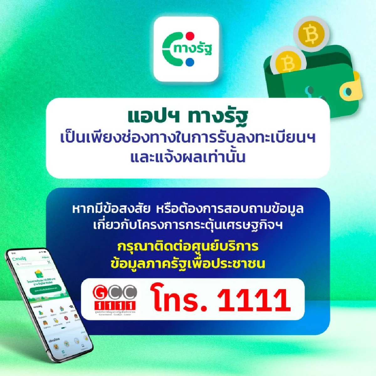 Call Center สำหรับสอบถามข้อมูลโครงการฯ ศูนย์บริการข้อมูลภาครัฐเพื่อประชาชน สายด่วน 1111