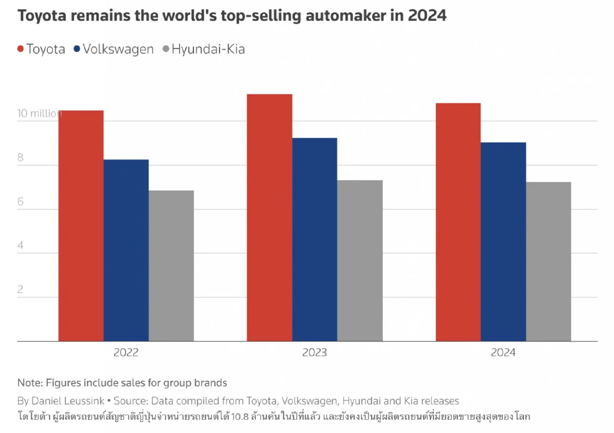 ที่มา :'โตโยต้า' รักษาแชมป์ที่ 1 ! ยอดขายรถยนต์ 10.8 ล้านคัน มากสุดในปี 2024