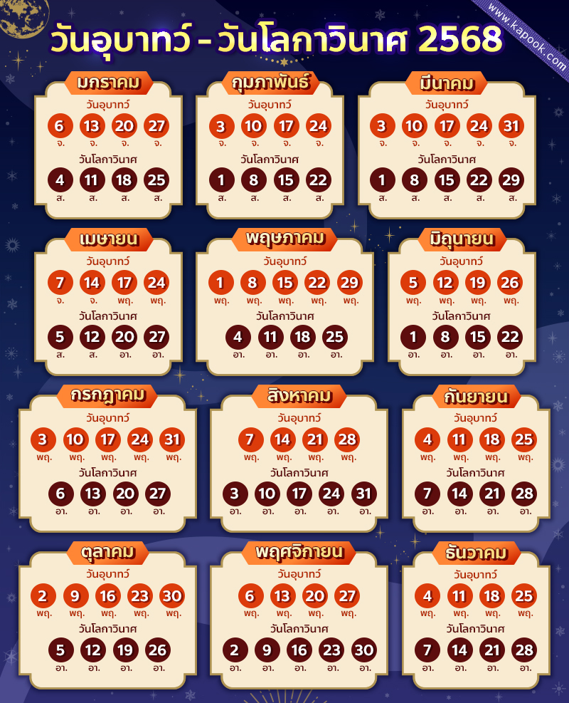ที่มา :วันอุบาทว์ - วันโลกาวินาศ 2568 ตรงกับวันไหน เพื่อเลี่ยงวันไม่เป็นมงคล