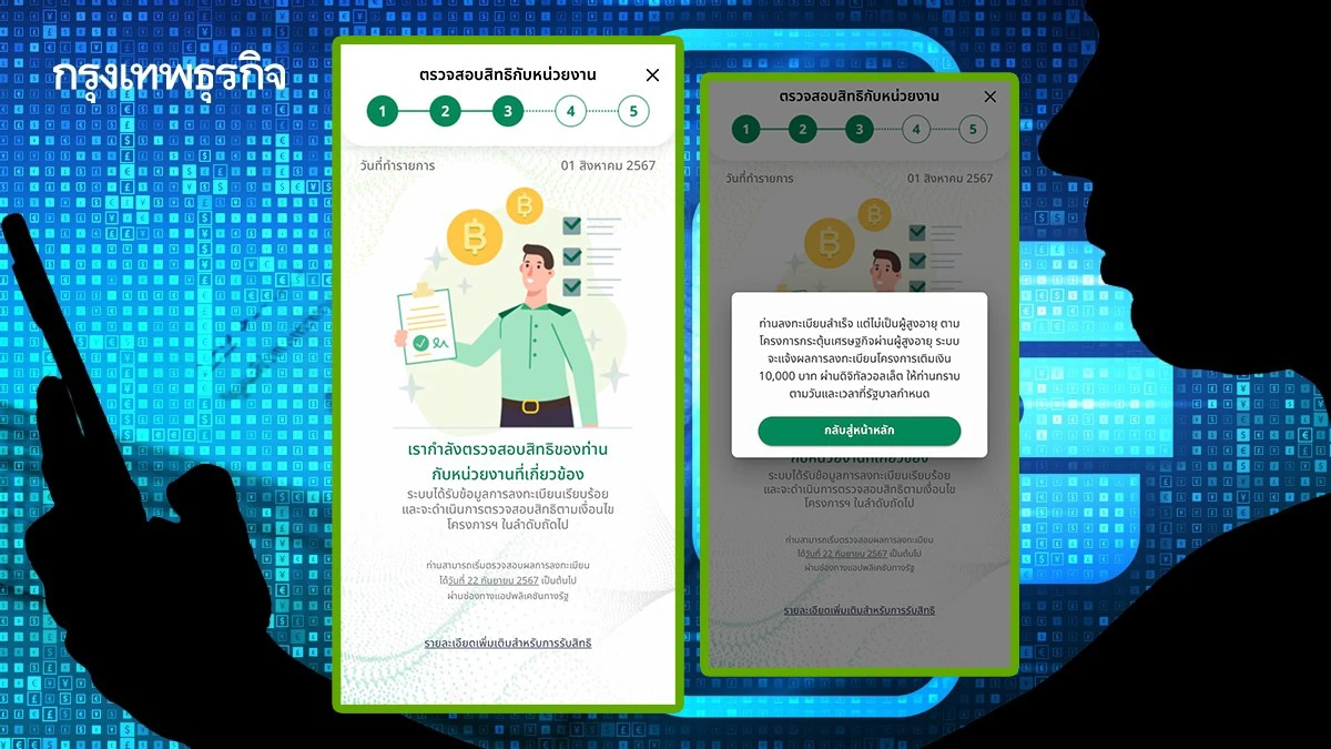 หากอยู่ในขั้นตอนที่ 5 คือได้รับสิทธิตามโครงการเติมเงิน ดิจิทัล 10,000 บาท ผ่านดิจิทัลวอลเล็ต