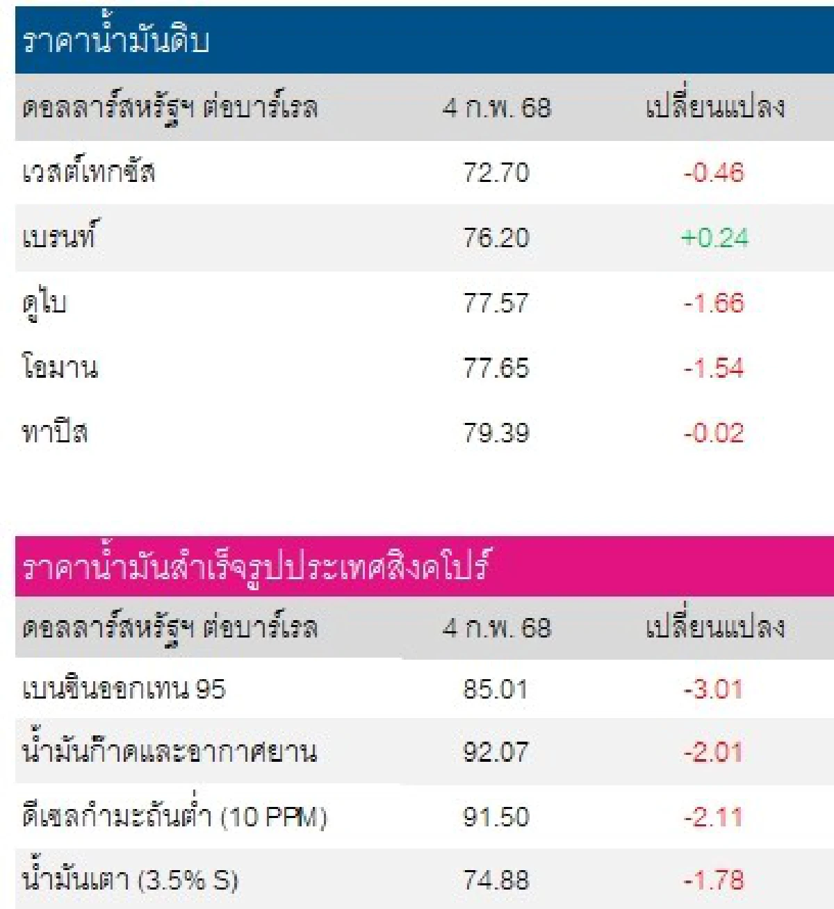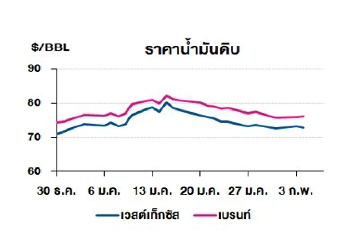 ที่มา :เวสต์เทกซัส 72.70 ดอลลาร์สหรัฐฯ /บาร์เรล เบรนท์ 76.20 ดอลลาร์สหรัฐฯ /บาร์เรล