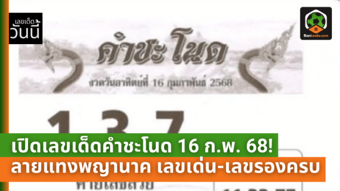 เปิดเลขเด็ดคำชะโนด 16 ก.พ. 68! ลายแทงพญานาคมาแล้ว เลขเด่น-เลขรองครบ จัดให้คอหวย