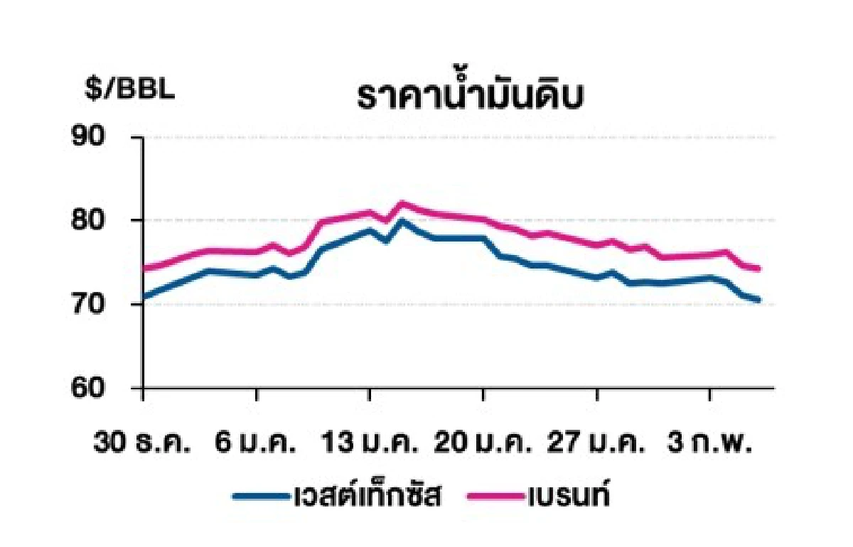 (-) อย่างไรก็ตาม ตลาดกังวลผลกระทบจากการขึ้นกำแพงภาษีนำเข้าจีน 10% ที่อาจจะส่งผลให้เกิดสงครามการค้าระหว่างประเทศ ทำให้อุปสงค์น้ำมันดิบชะลอตัวลง นอกจากนี้ตลาดยังคงจับตาการให้คำมั่นสัญญาของประธานาธิบดีสหรัฐฯ นายโดนัลด์ ทรัมป์ เมื่อวันพฤหัสที่ 6 ก.พ. 68 ที่ผ่านมาว่าจะเพิ่มกำลังการผลิตน้ำมันดิบสหรัฐฯ ทั้งนี้ตลาดคาดสต็อกน้ำมันดิบสหรัฐฯ อาจเพิ่มขึ้นมากกว่าที่คาดการณ์ไว้ก่อนหน้า