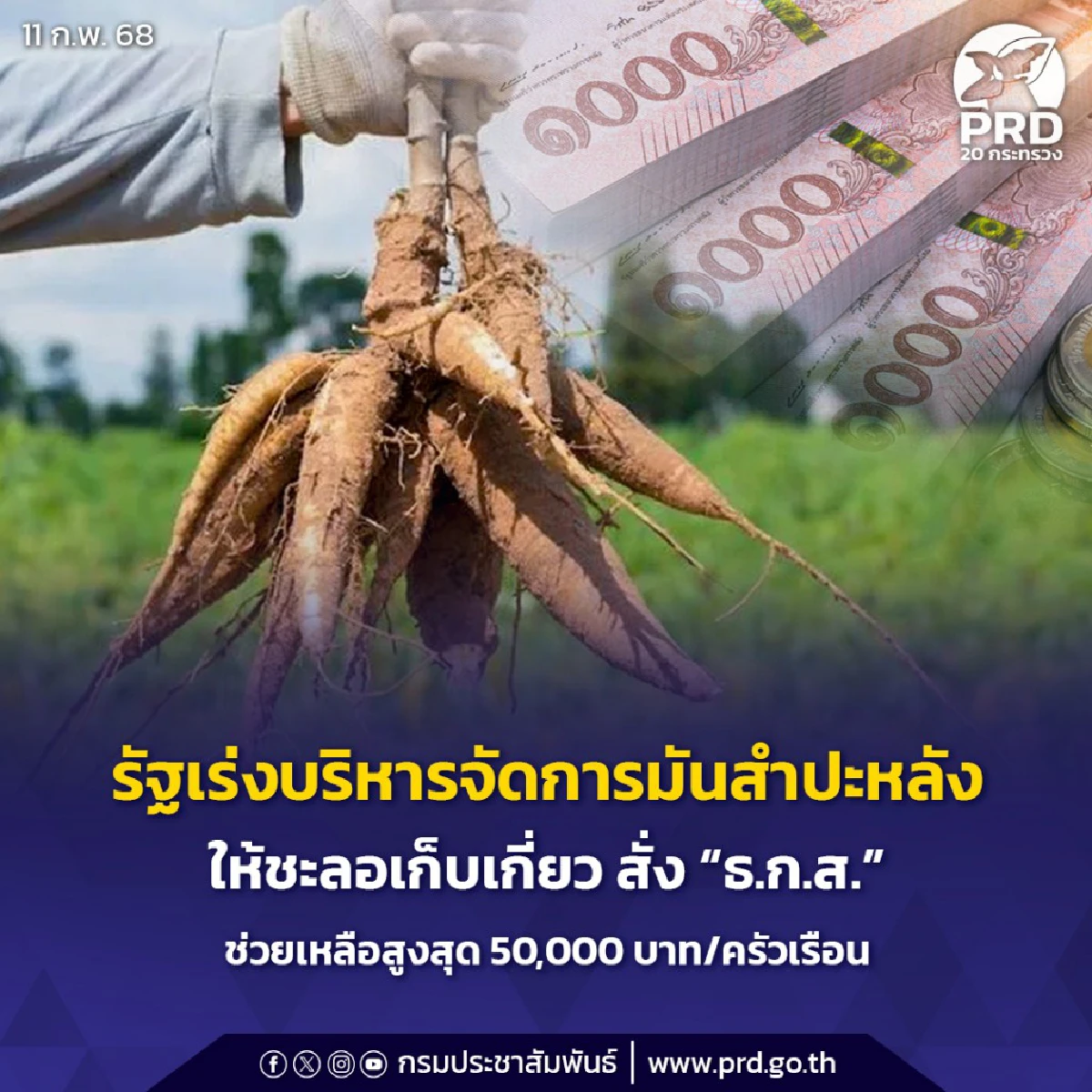 ที่มา :เงินช่วยเหลือสูงสุด 50,000 บาทต่อครัวเรือน ชาวไร่มันสำปะหลัง เช็ค ธ.ก.ส.