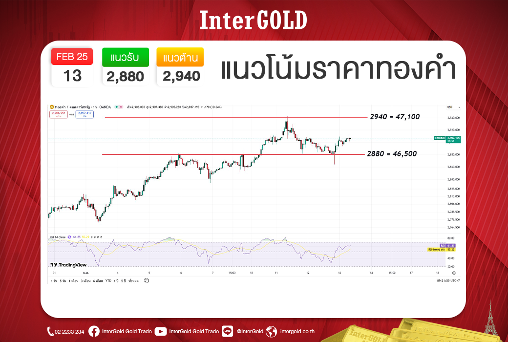 แหล่งที่มา : บทวิเคราะห์ราคาทองคำประจำวันที่ 13 กุมภาพันธ์ 2568 - InterGold
