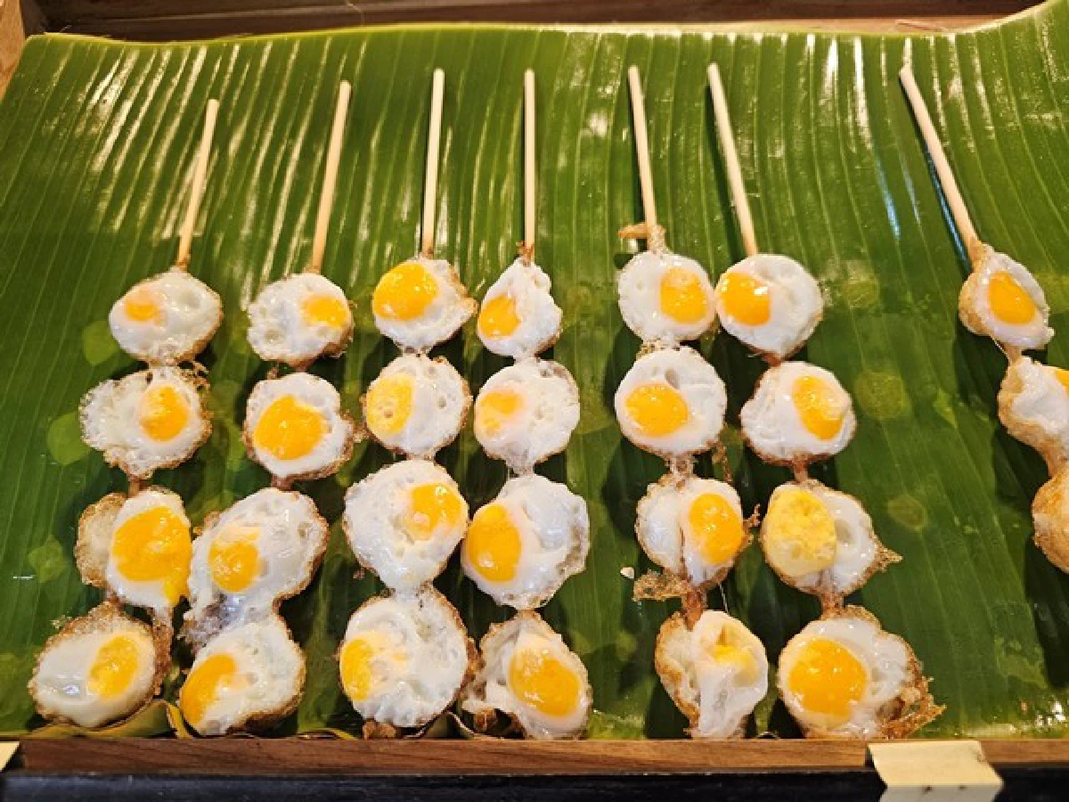 หลังจากที่เรานั่งเรือข้ามฟากมาจากวัดสนามเหนือ เดินเลี้ยวขวาจากวัดปรมัยยิกา ปัจจุบันมีทางคอนกรีตเดินสบาย เรียงรายไปด้วยอาหารการกิน หลายร้านขาย ทอดมันหน่อกะลา ล้วนน่ารับประทาน
