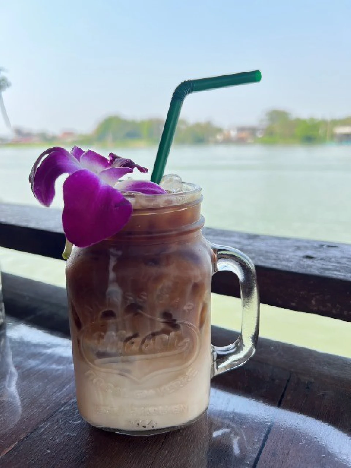 หลังจากเดินเข้าผ่านซุ้มประตู หมู่บ้านโอ่งอ่าง หมู่ 7 ตำบลเกาะเกร็ด อำเภอปากเกร็ด จังหวัดนนทบุรี เราก็มองหา ร้านอาหาร เพราะเป็นเวลาเที่ยงพอดี หม่ำอาหารแล้วค่อยเดินช้อปปิง ด้านขวามือของเรา มองเห็นป้ายทางเข้า เรือนมอญ ริมน้ำ น่าสนใจจึงเดินเข้าไปเลือกที่นั่งโต๊ะ ริมแม่น้ำเจ้าพระยา