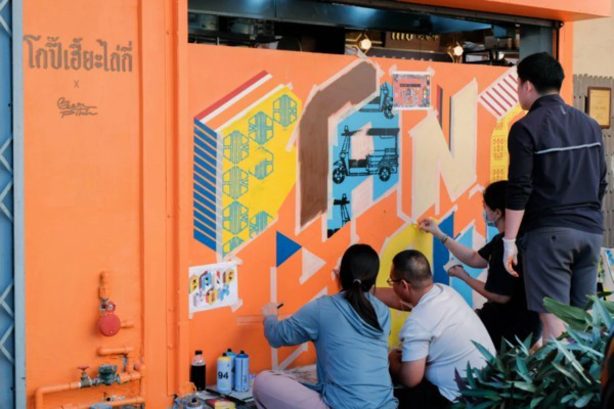 อีกทั้งจะมีเวิร์กชอปที่ได้ลองพิมพ์ลายจากกำแพง 'BANGKOK’ Typography Street art by BEERPITCH ผ่านแม่พิมพ์ลวดลายลิมิเต็ดที่ได้เตรียมไว้ นำมาพิมพ์ลายลงบนกระเป๋าผ้าที่ชื่นชอบ สร้างสรรค์เป็นภาพพิมพ์ที่เป็นเอกลักษณ์เฉพาะตัว ออกแบบได้เอง และสามารถแชร์ภาพกิจกรรมเพื่อรับส่วนลดเครื่องดื่มภายในร้านได้อีกด้วย