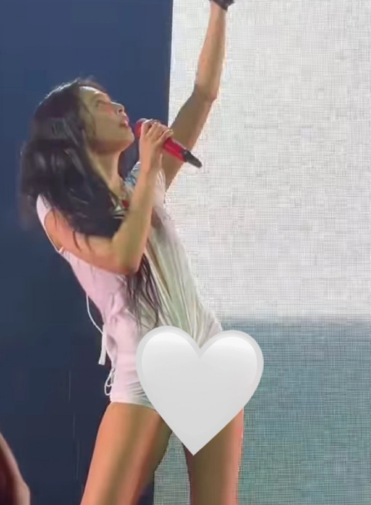 ทั้งยังเป็นชุดแนบเนื้อกระชับทุกสัดส่วนทั่วร่าง รวมถึงกางเกงชั้นในที่เผยจนเห็นเป็นร่อง ซึ่งหลังจากภาพ และคลิปในการโชว์ดังกล่าวปรากฏออกไปนั้น ได้เกิดเสียงวิจารณ์อย่างหลากหลายแง่มุมจากแฟนเพลง อาทิ