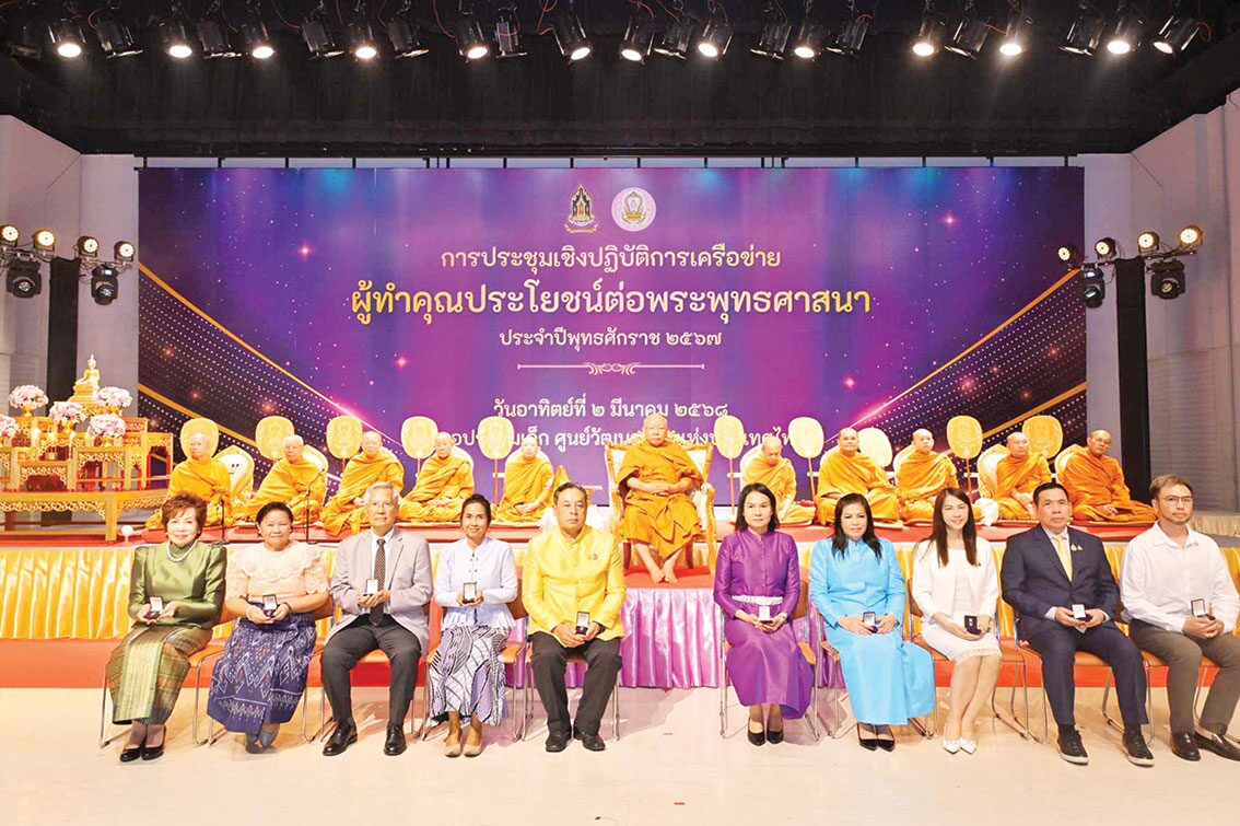 กรมการศาสนา กระทรวงวัฒนธรรม จัดการประชุม เชิงปฏิบัติการเครือข่ายผู้ทำคุณประโยชน์ต่อพระพุทธศาสนา และพิธีมอบพัดรองและเข็มเชิดชูเกียรติ ผู้ทำคุณประโยชน์ต่อพระพุทธศาสนา ประจำปี พ.ศ.2567 โดยมี สมเด็จพระมหาธีราจารย์ กรรมการมหาเถรสมาคม เจ้าอาวาส