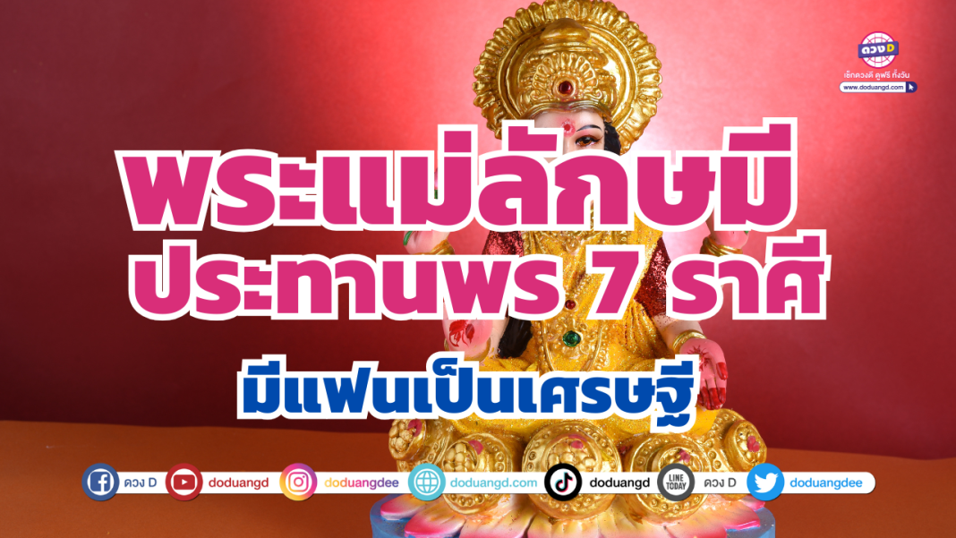 7 ราศี วันเกิดพระแม่ลักษมี เช็กเลย : มาแล้วค้า เว็บดวงD เตรียมเฮกันได้เลยสำหรับชาว “7 ราศี” ในวันเกิดของพระแม่ลักษมี เทพเจ้าแห่งโชคลาภและความเจริญรุ่งเรือง นอกจากการขอพรให้ชีวิตการงานและการเงินสมบูรณ์แล้ว ยังเป็นเวลาที่ดีในการขอพรด้านความรักด้วย โดยเฉพาะ 7 ราศีที่ดวงความรักของพวกเขาจะได้รับพรจากพระแม่ลักษมี ซึ่งอาจทำให้มีแฟนเป็นมหาเศรษฐีและชีวิตรักเต็มไปด้วยความมั่งคั่งและโชคลาภไปพร้อมกัน! ราศีไหนบ้างที่โชคดีในเรื่องนี้ มาดูกันเลย!