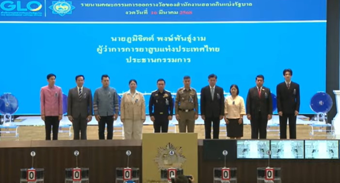 กรรมการออกรางวัลสลากกินแบ่งรัฐบาล งวด 16 มีนาคม 2568 มีนายภูมิจิตต์ พงษ์พันธุ์งาม ผู้ว่าการยาสูบแห่งประเทศไทย เป็นประธานกรรมการออกรางวัล