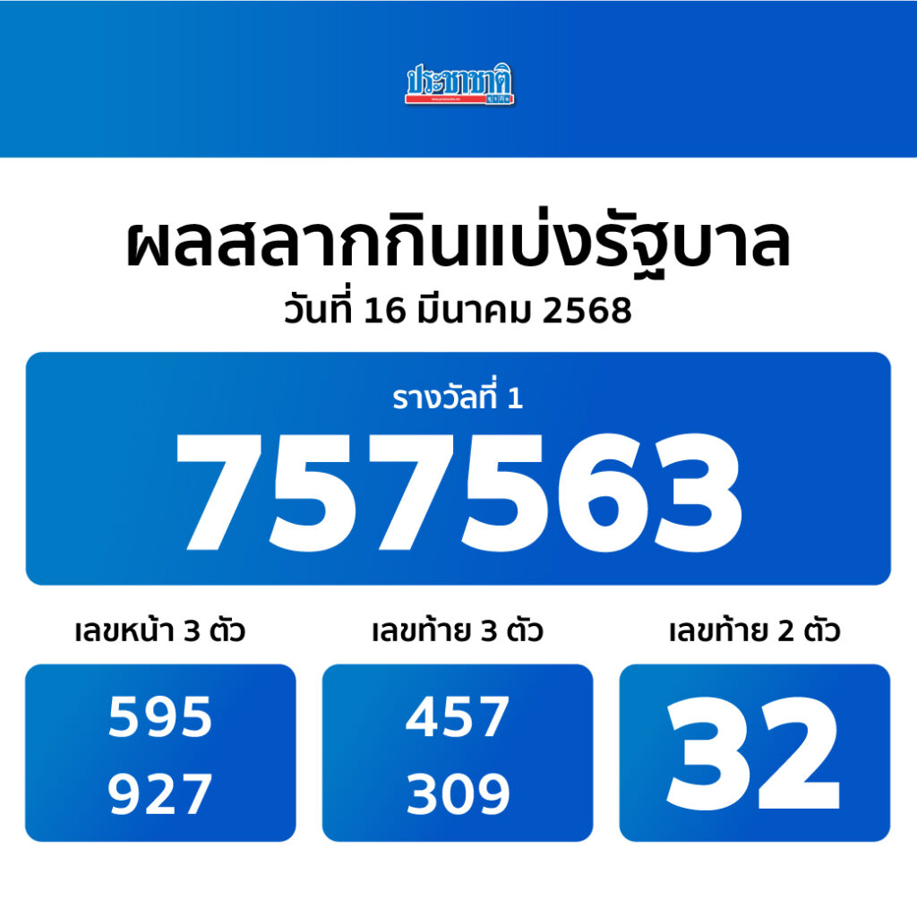 ตรวจหวย ผลสลากกินแบ่งรัฐบาล งวด 16 มีนาคม 2568