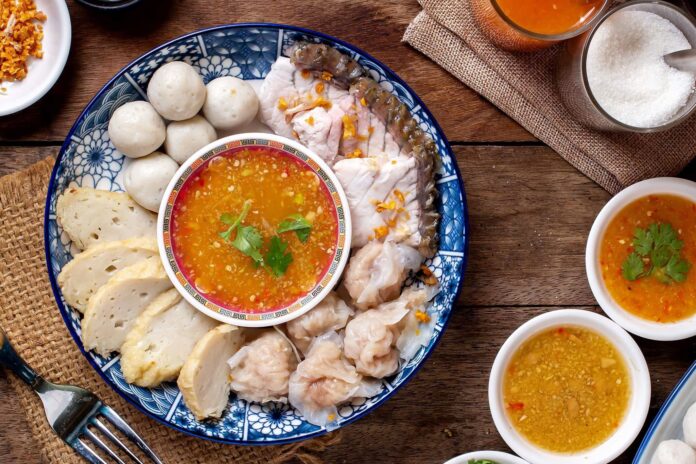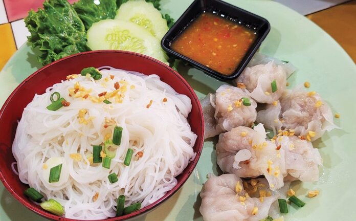 “เกี๊ยวปลา” ถือเป็นเมนูซิกเนเจอร์ของร้าน ตัวแผ่นเกี๊ยวทำมาจากเนื้อปลาแท้ๆ ตัวเกี๊ยวนุ่มเต็มคำ กินคู่กับน้ำจิ้มซีฟู้ดมะนาวรสแซ่บ