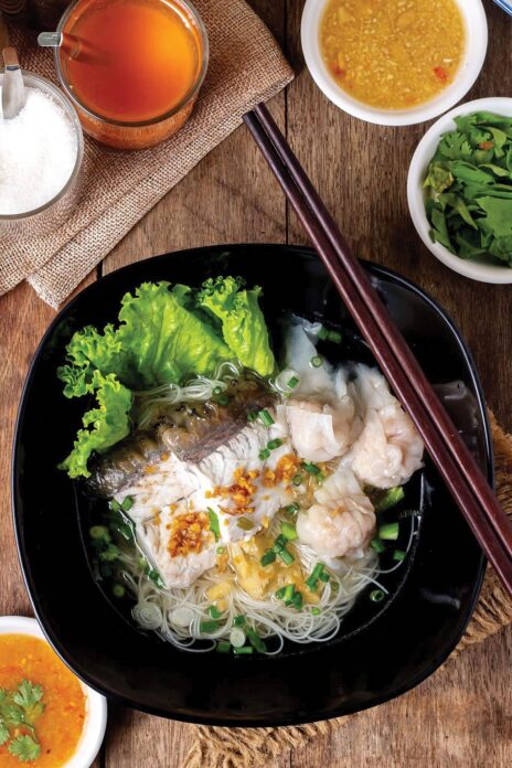 ไม่ว่าจะเป็น บะหมี่เกี๊ยวปลา เกี๊ยวปลาลวกจิ้ม ข้าวต้มปลากะพง ข้าวแห้งปลากะพง เกี๊ยวปลาลุยสวน ลวกจิ้มปลากะพง เกาเหลาเกี๊ยวปลา บะหมี่แห้งลูกชิ้นปลา ฮือก๊วยลูกชิ้นปลาเยาวราช ที่มีเนื้อสัมผัสนุ่มเด้ง หอม ไม่คาว