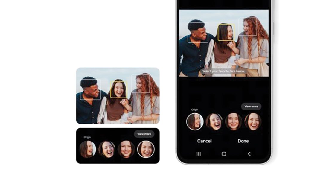 นอกจากนี้ ยังมีฟีเจอร์ Best Face สุดเอ็กซ์คลูซีฟที่มีให้ใช้ได้บน Galaxy A56 5G ช่วยให้การถ่ายภาพกลุ่มดูสมบูรณ์แบบและง่ายกว่าที่เคย โดยผู้ใช้สามารถเลือกช่วงเวลาที่ใบหน้าหรือองค์ประกอบดีที่สุดของแต่ละคนได้สูงสุดถึง 5 คน ไม่ว่าจะมีใครกะพริบตา หรือมองไปทางอื่น Best Face จะช่วยให้ทุกคนดูดีที่สุดในภาพเดียวอย่างเป็นธรรมชาติ