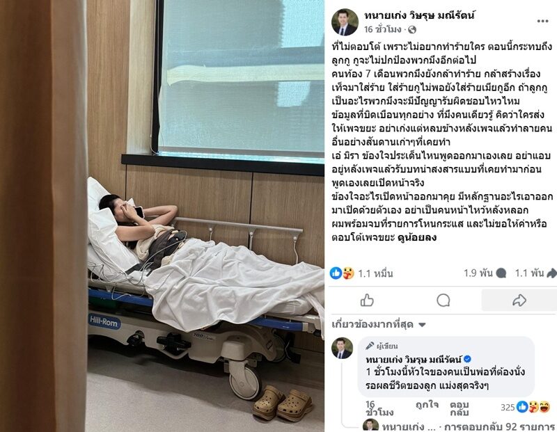 ล่าสุด ทนายเก่ง วิษรุษ เคลื่อนไหวแล้วหลังจากเงียบมาตลอด โดยโพสต์ภาพและข้อความร่ายยาวโต้ตอบอย่างเดือดด้วยว่า