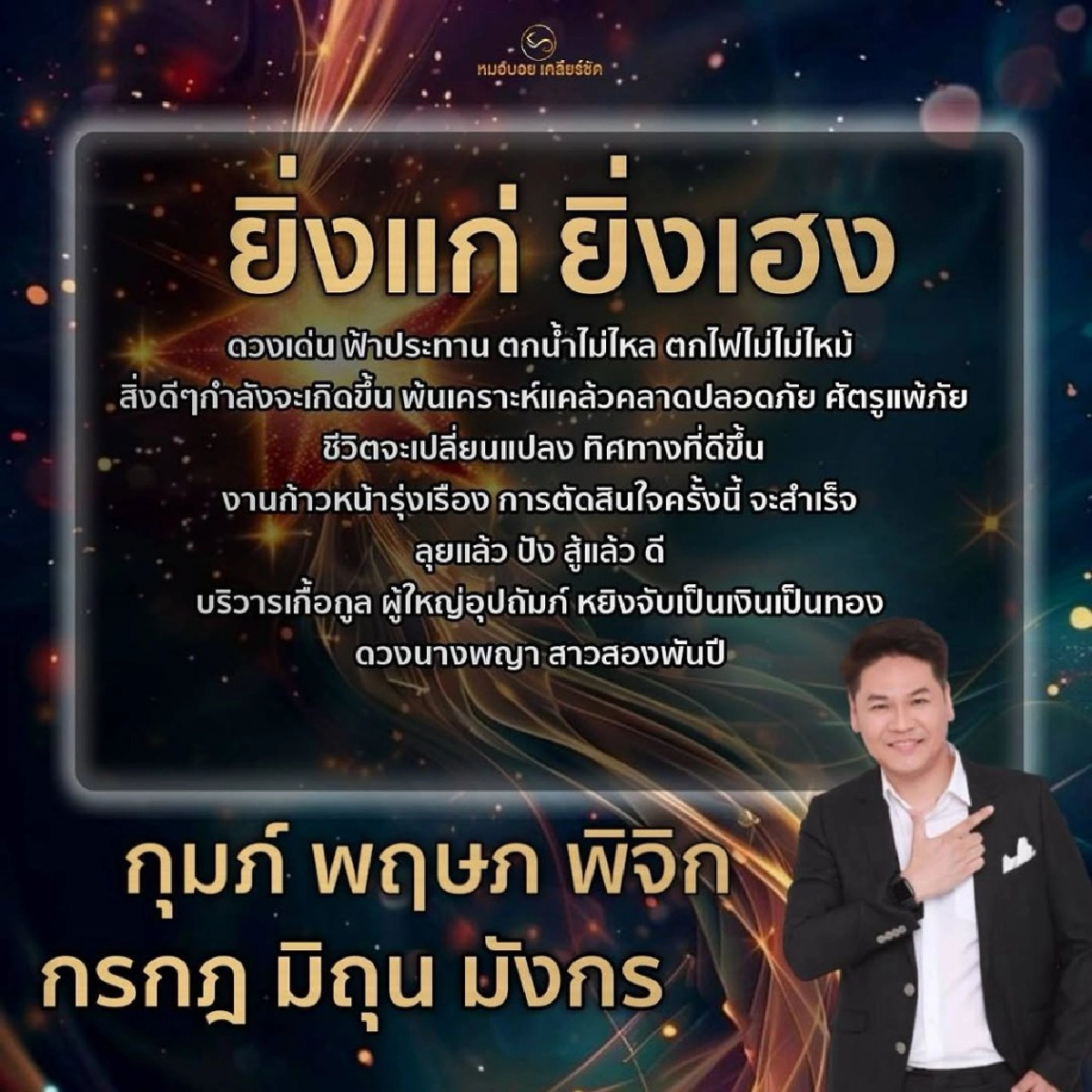 ุ"6 ราศี" ยิ่งแก่ ยิ่งรวย "หมอดูชื่อดัง" "หมอบอย เคลียร์ชัด" อีกหนึ่งผู้เชี่ยวชาญศาสตร์พยากรณ์ ชี้เบี้ยยังชีพไม่เข้ายังปัง มีราศีไหนบ้างเช็กพร้อมกัน