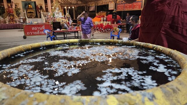 ส่องเลขเด็ด อ่างน้ำมนต์ พิธีจุดเทียนเสริมดวง 4 เดือน 4 ได้เลขลุ้นโชค