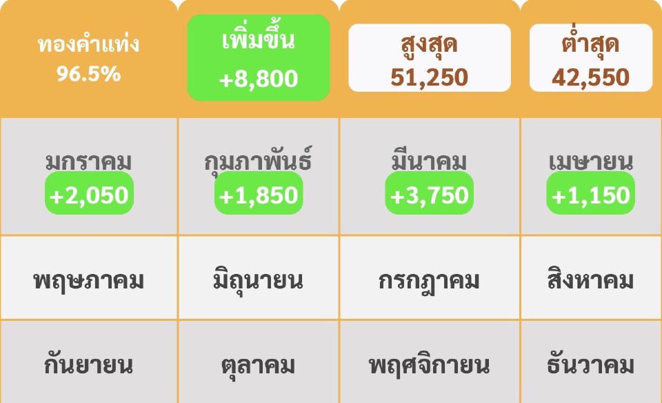 ที่มา: ราคาทองล่าสุด2568 พุ่ง 8,800 บาทตั้งแต่ต้นปี เช็คการปรับขึ้น-ลง