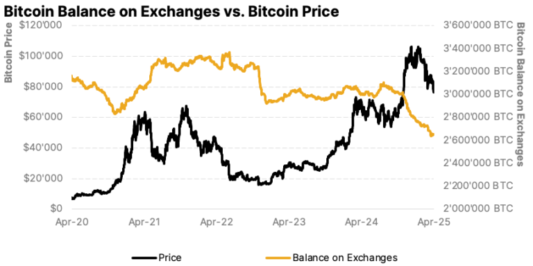รายงานล่าสุดเผยให้เห็นว่า ปริมาณ Bitcoin ที่ถูกเก็บไว้บนเว็บเทรดแบบรวมศูนย์ (centralized exchanges) ได้ร่วงลดลงแตะระดับต่ำที่สุดในรอบ 5 ปี สะท้อนให้เห็นถึงพฤติกรรมของนักลงทุนที่เปลี่ยนไป โดยนักลงทุนจำนวนมากตัดสินใจเลือกที่จะย้ายเหรียญไปเก็บไว้ในกระเป๋าเงินส่วนตัวหรืออุปกรณ์จัดเก็บ (cold storage) เพื่อความปลอดภัยที่มากขึ้น