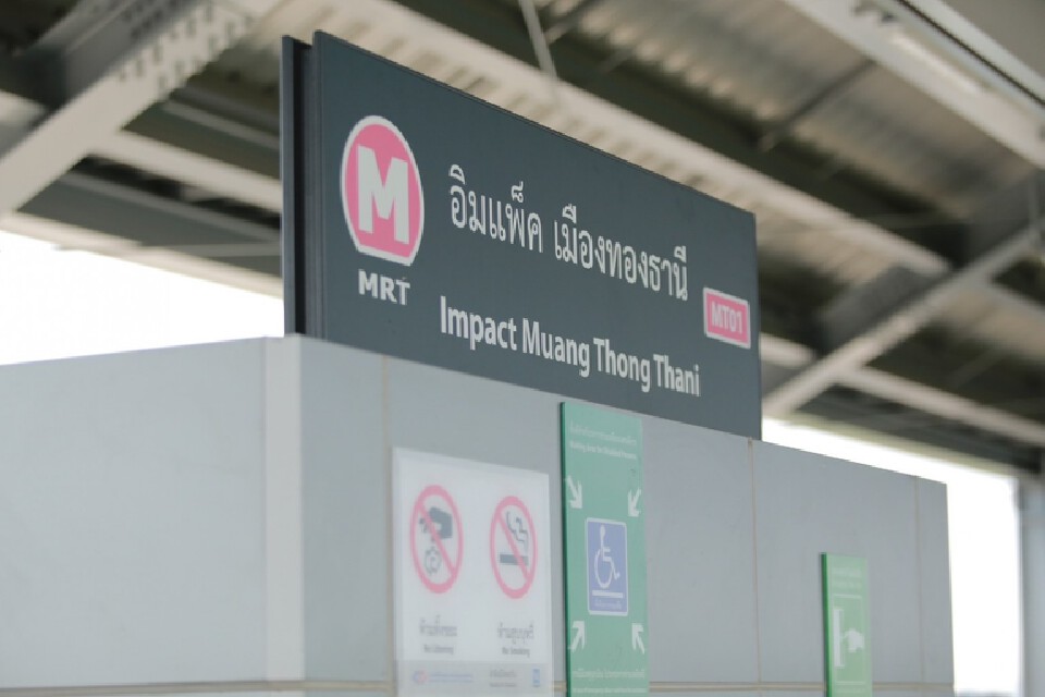 ในส่วนของสถานีอิมแพ็ค เมืองทองธานี (MT01) สามารถเดินทางต่อไปยังมหาวิทยาลัยสุโขทัยธรรมาธิราช (ทางออกที่ 1), โรงเรียนวัดผาสุกมณีจักร (ทางออกที่ 2), อิมแพ็ค เมืองทองธานี (ทางออกที่ 3) และซอยแจ้งวัฒนะ - ปากเกร็ด 39 (ทางออกที่ 4)