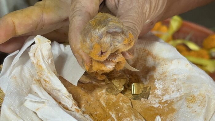 ซึ่งพบว่าลูกแมวตัวที่ 5 ได้เสียชีวิตแล้ว เมื่อตนนำมาตรวจสอบดู ก็ต้องประหลาดใจ เมื่อพบว่าลูกแมวตัวน้อยสีส้มที่ตายลงไปนั้น มี 2 หัว สร้างความแปลกใจให้กับตนมาก เพราะเพิ่งเคยเจอเป็นครั้งแรก
