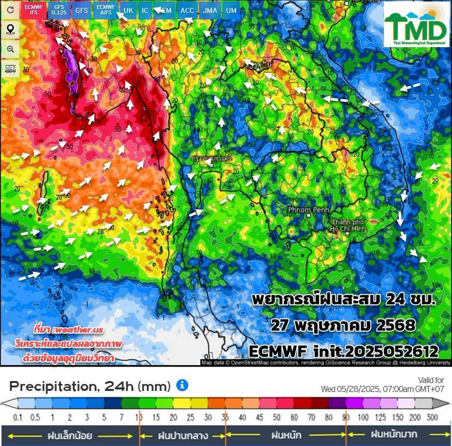 พยากรณ์ฝนสะสม วันที่ 27 พ.ค. 2568