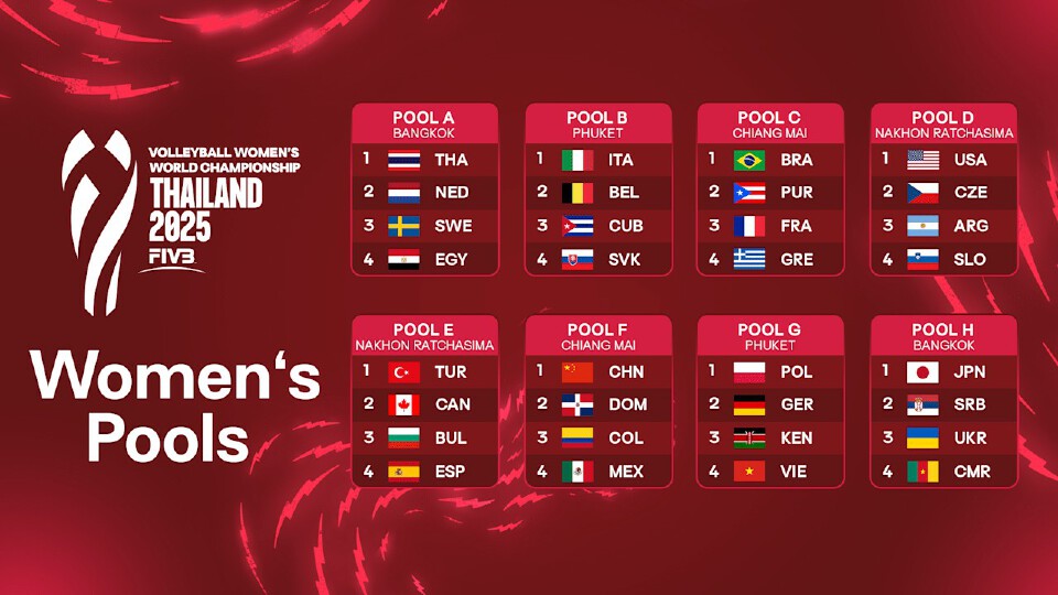 วอลเลย์บอลหญิงชิงแชมป์โลก FIVB Volleyball Women’s World Championship 2025 มีกี่ทีมเข้าร่วมและในรอบ POOL PHASE แต่ละทีมอยู่กลุ่มใดบ้าง แข่งที่สนามไหน