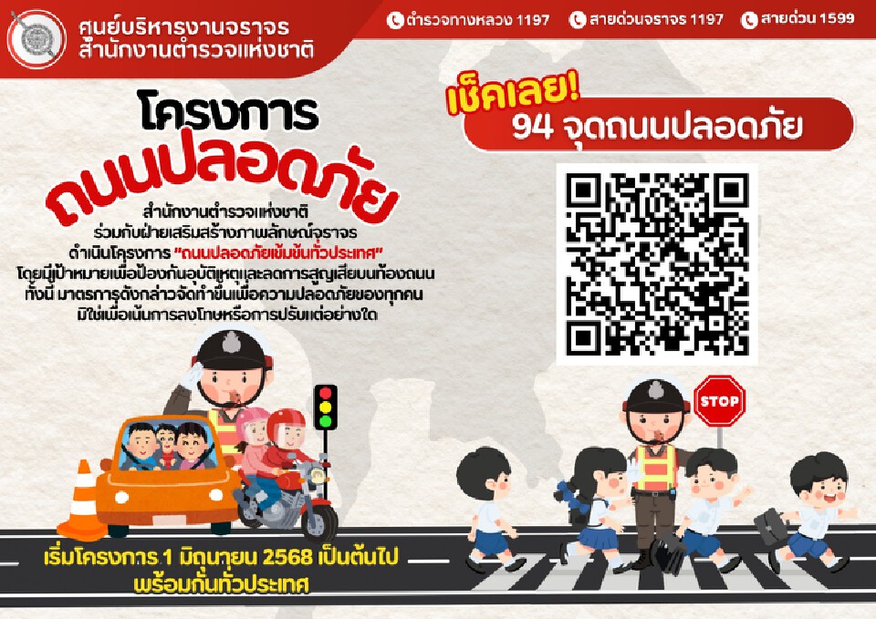 ที่มา : เริ่มวันนี้ สตช.เปิด 94 ถนนทั่วประเทศ เข้มกฎจราจร ฝ่าฝืนดำเนินคดี