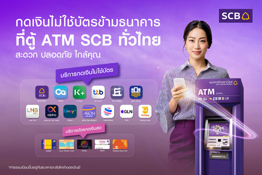ธนาคารไทยพาณิชย์ เปิดให้บริการ “กดเงินไม่ใช้บัตร ข้ามแบงก์” ครอบคลุมถึง 14 พันธมิตรสถาบันการเงิน ทั้งในประเทศไทยและต่างประเทศ ได้แก่