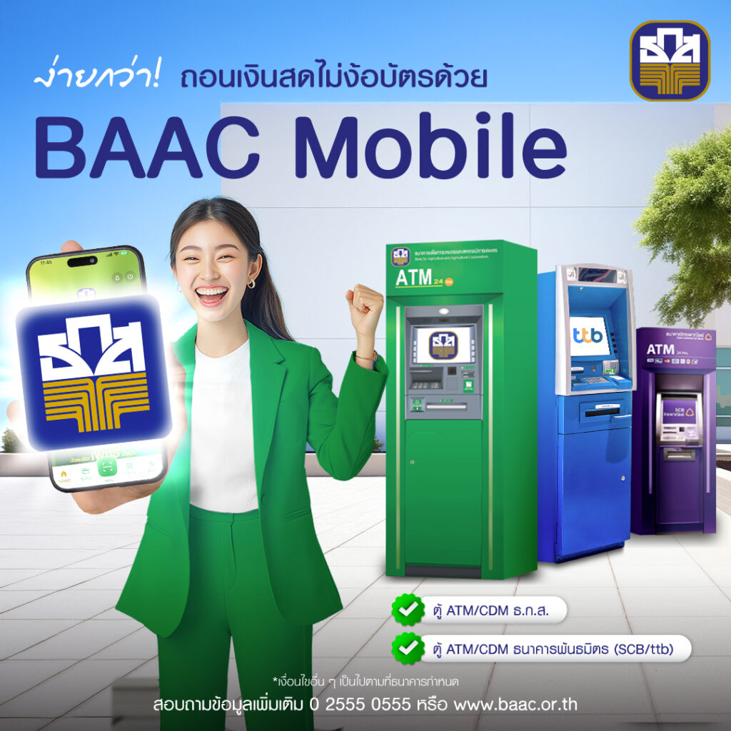 ธ.ก.ส. กดเงินไม่ใช้บัตรได้ที่ตู้ ttb