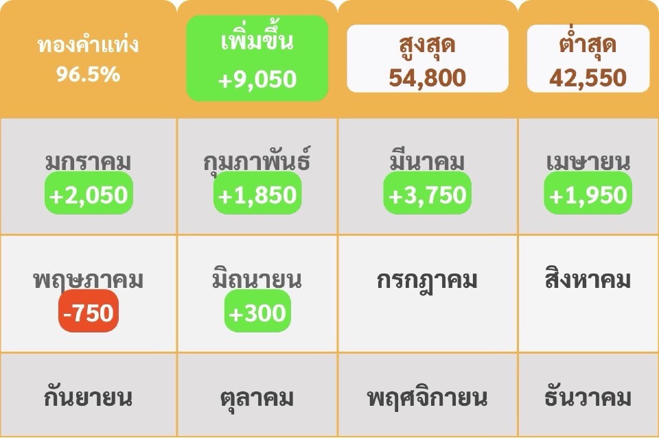 ที่มา : ราคาทองล่าสุด 2568 พุ่ง 9,050 บาทตั้งแต่ต้นปี เช็คการปรับขึ้น-ลง