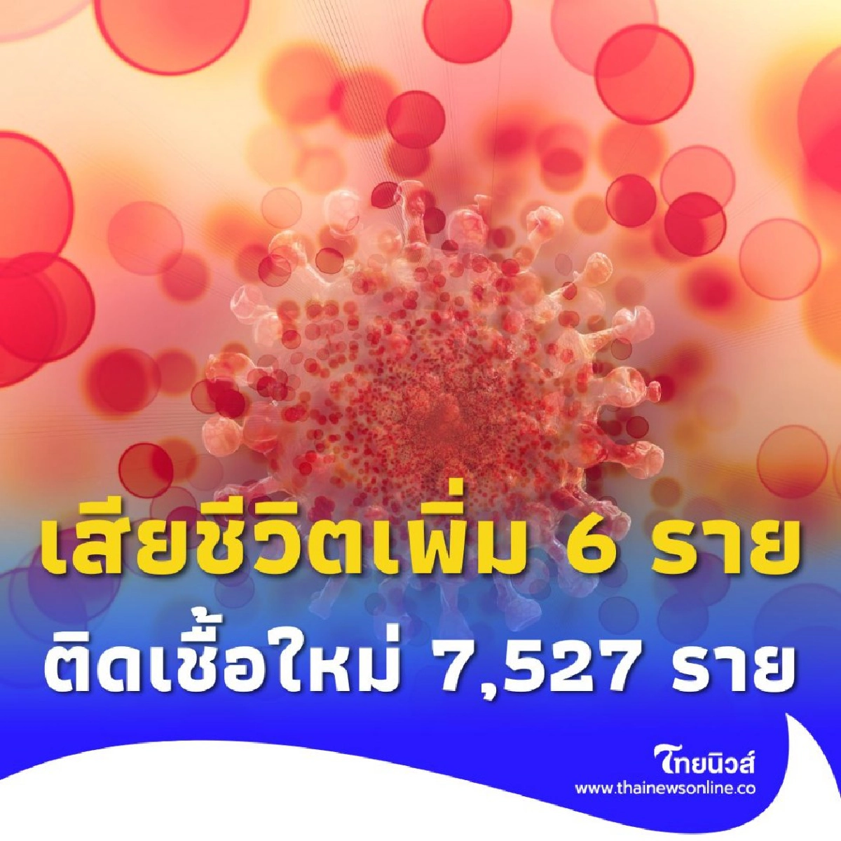 กรมควบคุมโรคเผยยอดติดเชื้อใหม่ 7,527 ราย เสียชีวิตเพิ่มอีก 6 ราย