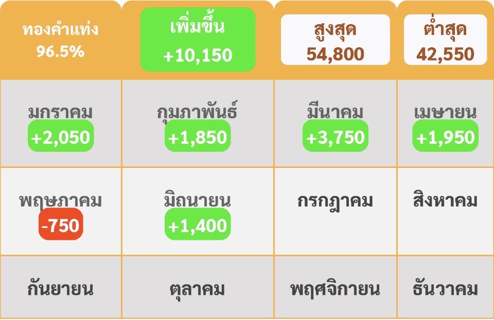 ราคาทองตั้งแต่วันที่ 1 ม.ค.-14 มิ.ย. 68 มีการปรับราคาเพิ่มขึ้นแล้วถึง 10,150 บาท