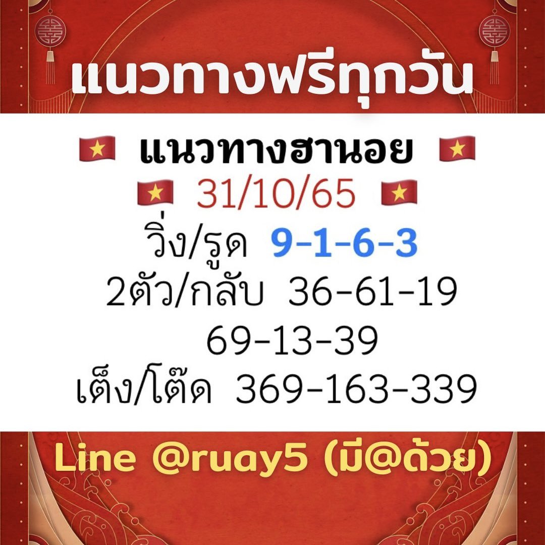 แนวทางหวยฮานอย 25/10/65