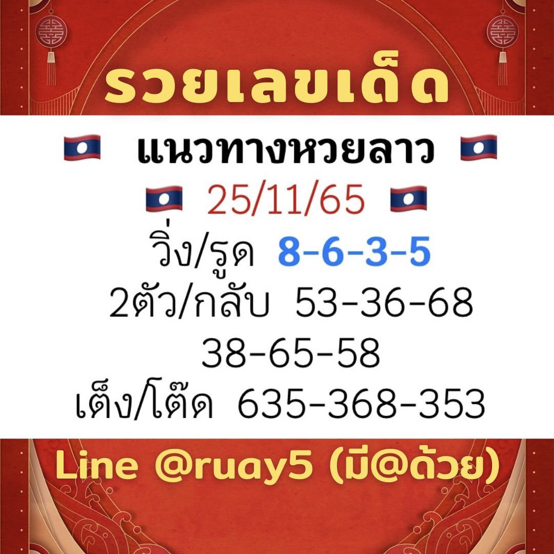 ที่มา :https://www.thaihuay.com/หวยลาว/แนวทางหวยลาว-25-11-65/