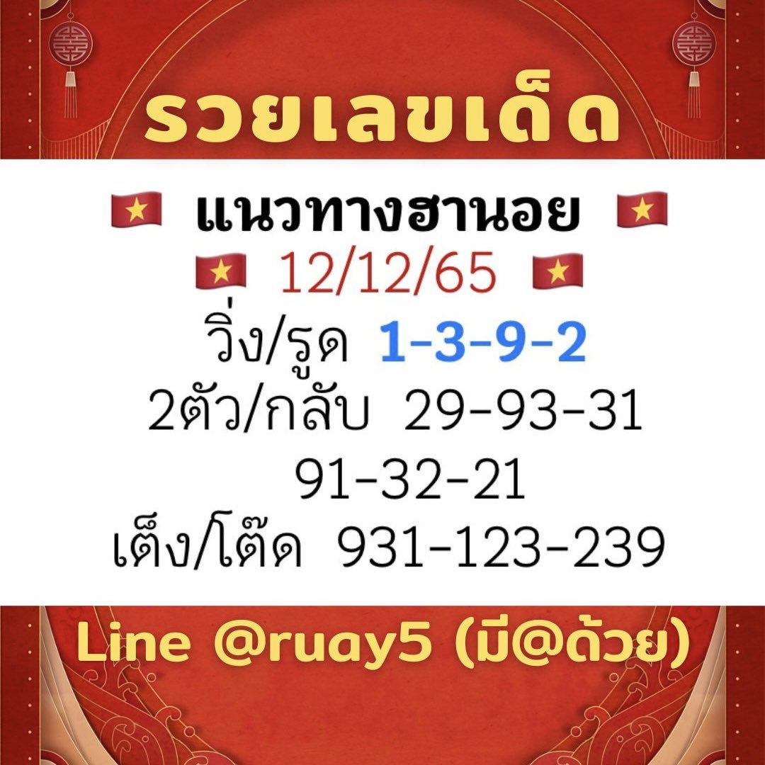แนวทางหวยฮานอย 5/12/65